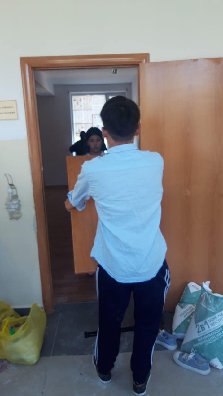 Жазғы демалыс кезеңінде балаларды жұмыспен қамтылуын ұйымдастыру мақсатында 10 сынып оқушыларынан құрылыс жөндеу бригадасы құрылып, мектепті жөндеуге көмек көрсетіп жатыр.