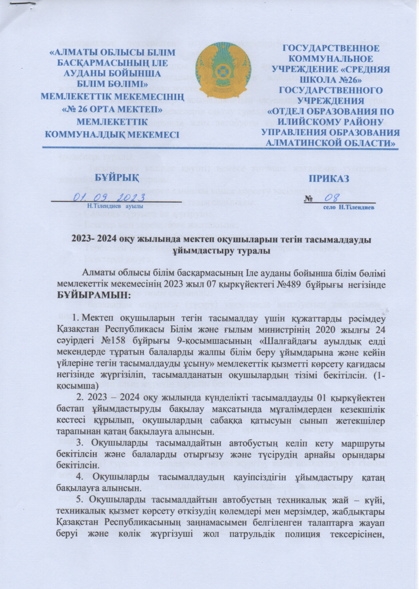 2023-2024 оқу жылында мектеп оқушыларын тегін тасымалды ұйымдастыру туралы