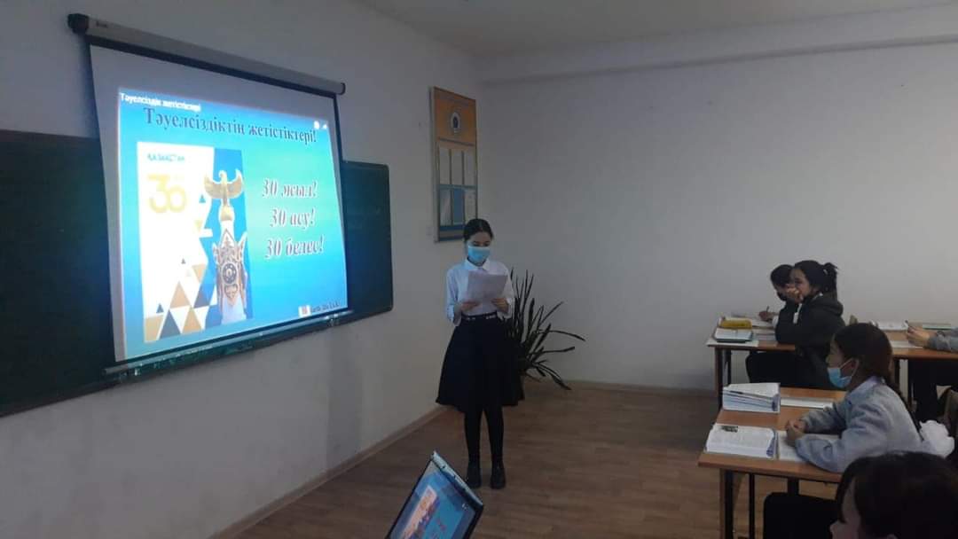 16 желтоқсан – Қ.Р Тәуелсіздік күніне орай мектебімізде тарих пәні мұғалімі М.Тұйғынбекованың ұйымдастыруымен "30 жыл, 30 асу, 30 белес!" тақырыбында сынып сағаты өткізілді. Сынып сағаты барысында Тәуелсіздік тарихы жайлы бейне » "№26 ОРТА МЕКТЕБІ" МКМ