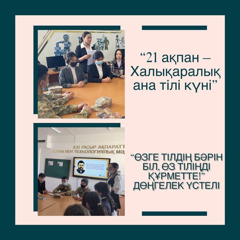 21 ақпан – Халықаралық Ана тілі күніне орай мектептегі өзін өзі басқару ұйымының көшбасшыларымен дөңгелек үстел өткізілді. Мақсаты балалардың ана тіліне деген сүйіспеншілігін арттыру, өз тілдерін құрметтеуге және өзге тілдерді де білуге тәрбиелеу.
