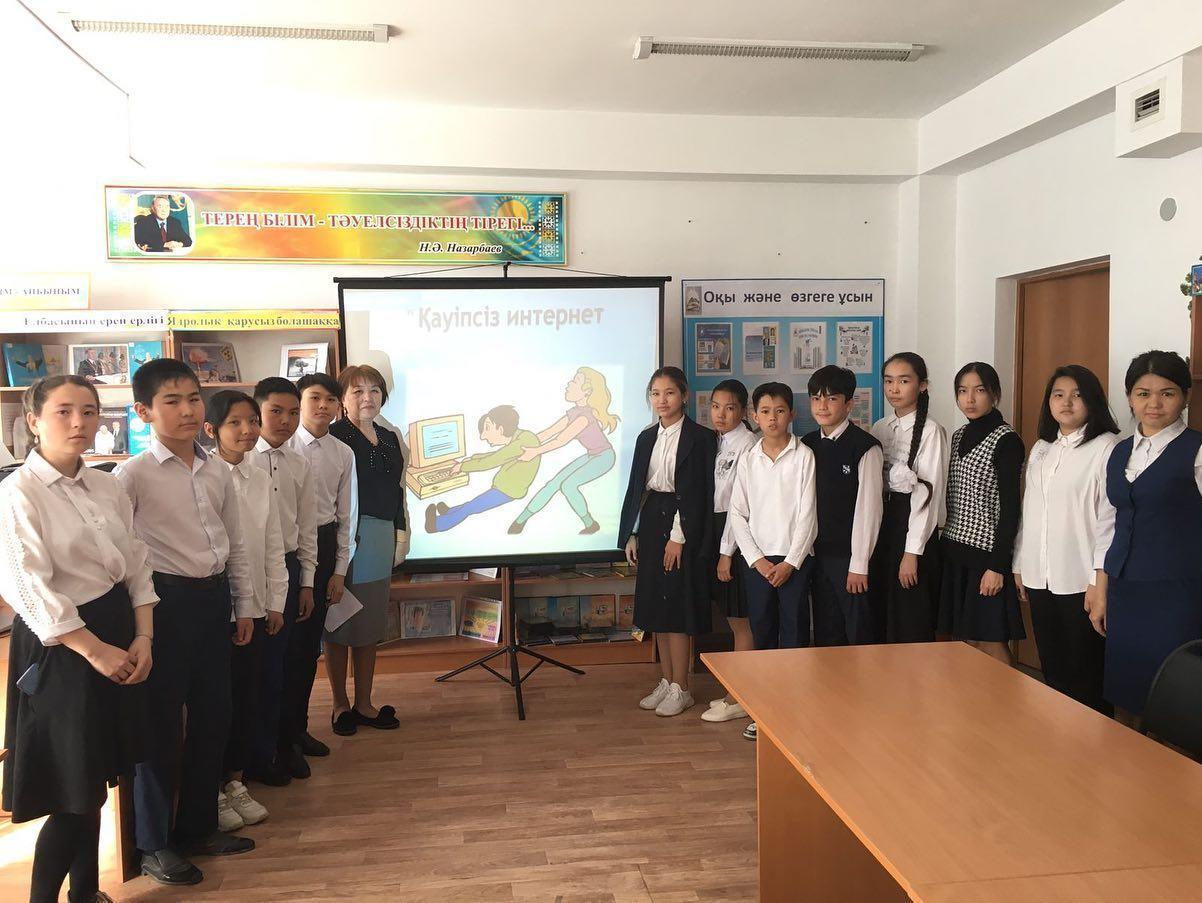 4-8 сәуір аралығында “Қауіпсіз Интернет” туралы 7 сыныптар арасында презентация, видиороликтер көрсетіліп, психологиялық кеңес өткізілді. Негізгі мақсаты: Бүкіләлемдік өрмек - Ғаламторға байланысты оқушыларда толық ой қалыптастыру, пайдасы мен зиянын