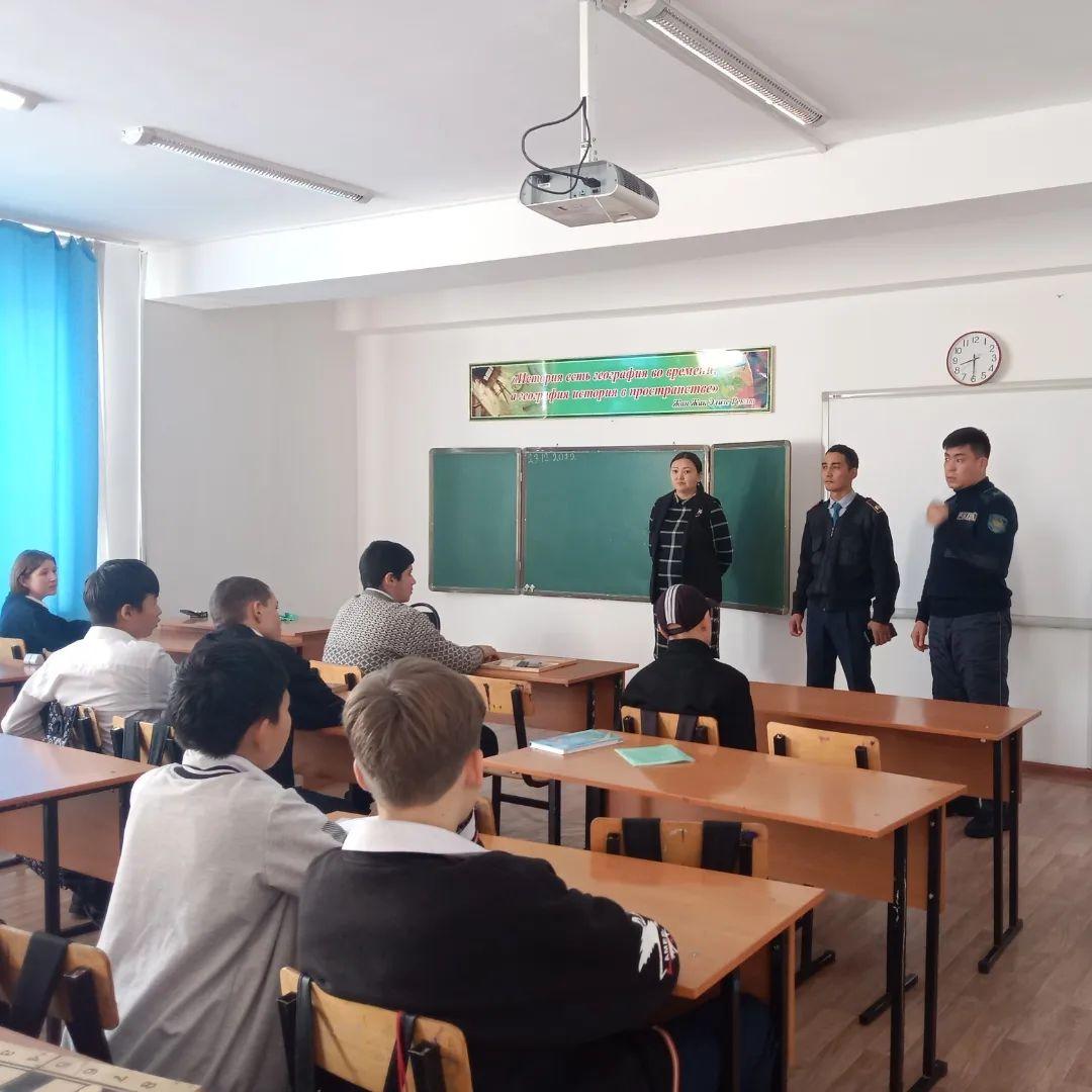 Бүгін мектебімізде ПБ қызметкерлерімен бірлесе «Өз құқығыңды біл және құқық бұзушылыққа жол берме» тақырыбында жоғары сынып оқушыларымен кездесу өткізілді.