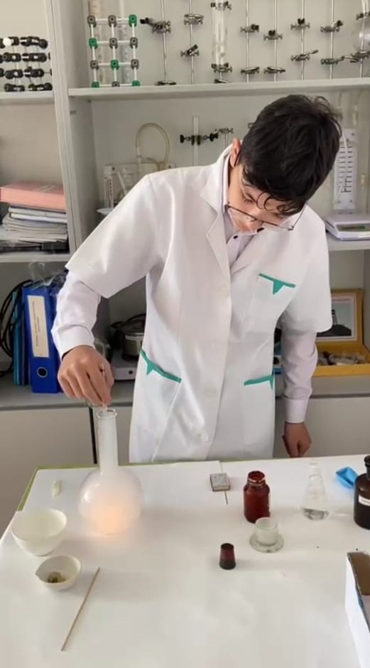 10 ә сынып оқушысы Бекзатхан Адина "Жанбайтын орамал" қызықты тәжірибесін жасады. Оған керекті заттар этил спирті, орамал, қайшы, сіріңке,