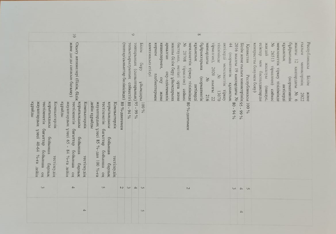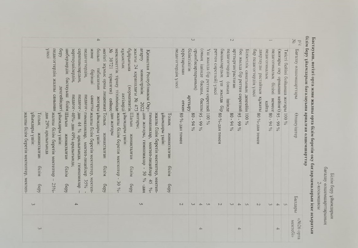 Мектептің өзін-өзі бағалауы » "№26 ОРТА МЕКТЕБІ" МКМ