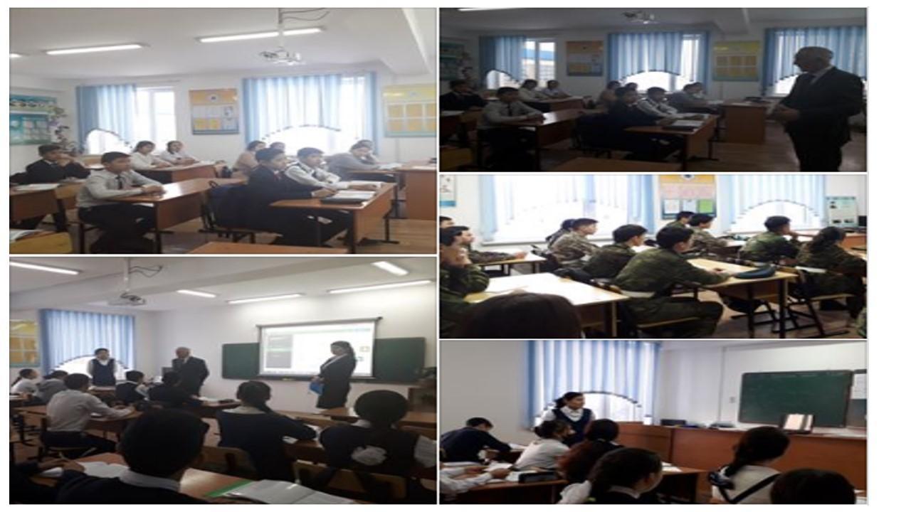 Н.Тілендиев ауылы №26 орта мектебінде құқық бұзушылықтың алдын алу барысында «Сен және сенің құқығың» онкүндігі аясында мектеп директоры А.С.Наурызбаев пен директордың тәрбие ісі жөніндегі орынбасарлары жоғарғы сынып оқушыларымен бопсалаудың алдын алу барысында әңгіме жүргізді.
