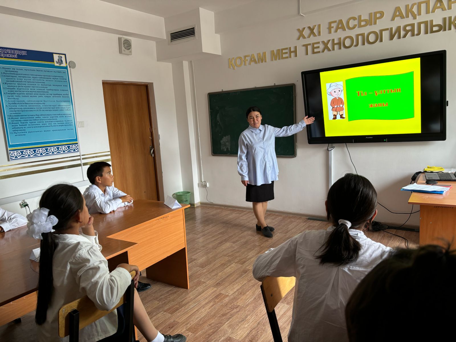 Оқушыларды мемлекеттік тілімізді сүюге, әр ұлттың өзіндік ерекшеліктері, салт дәстүрі, тіл ерекшелігі болатынын түсіндіру. Оқушылардың ой-өрісін, дүниетанымын кеңейту, сөздік қорын молайту, жұрт алдында еркін ауызекі сөйлеуге баулу. Еңбекқорлыққа адамгершілікке тәртіпке ізденімпаздыққа ұйымшылдыққа тәрбиелеу мақсатында өткізілген іс шара.Орындаған: Тогуспаева Г Малкайдарова А