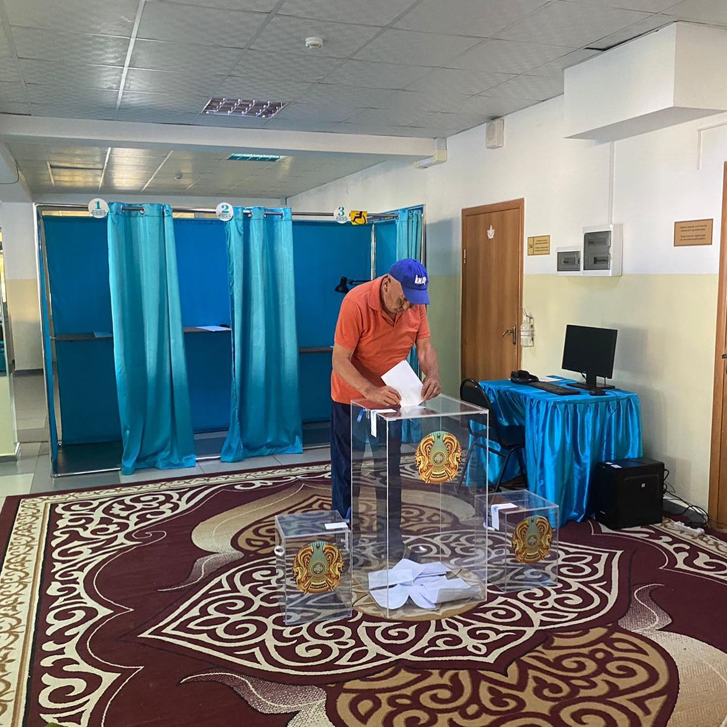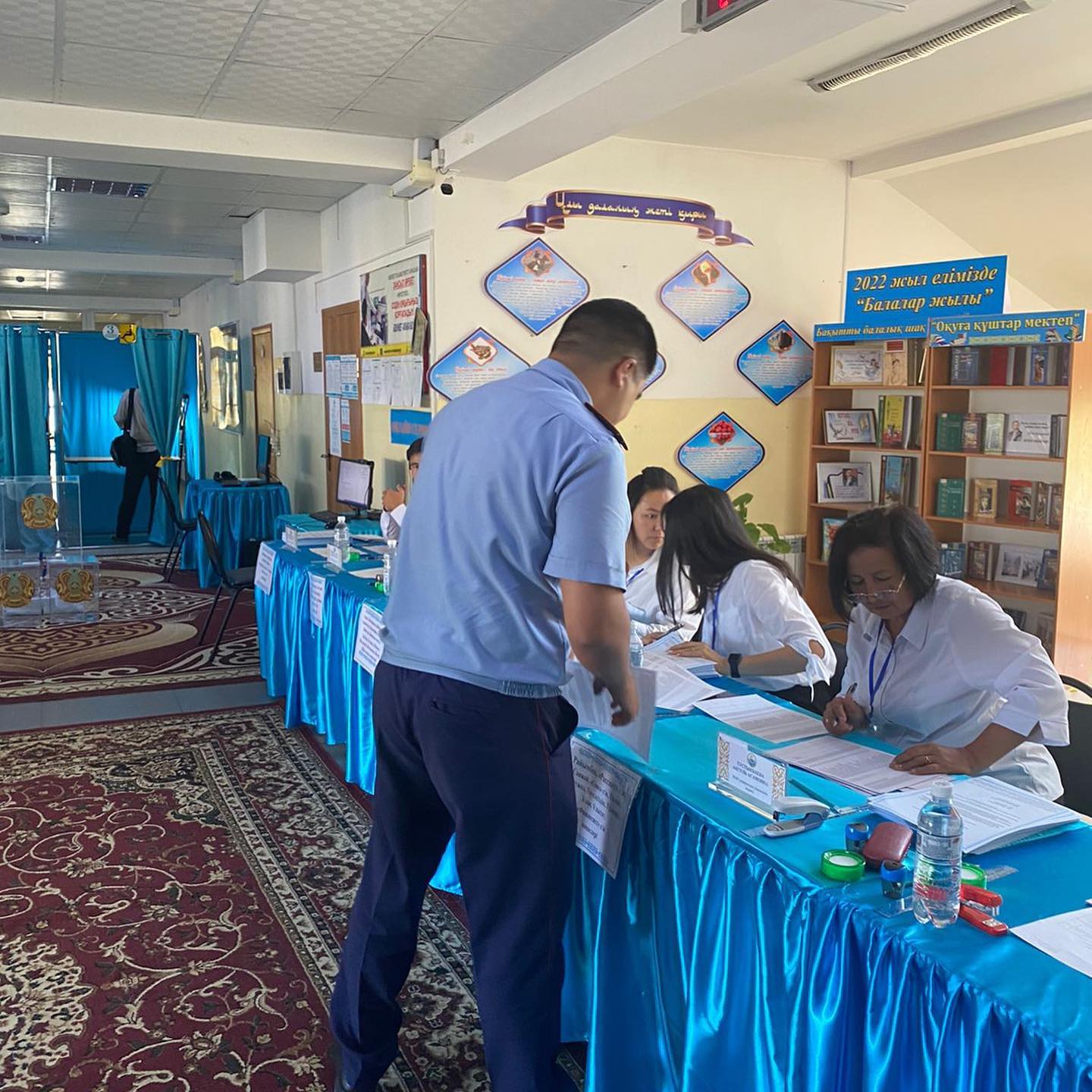 N 385 референдум учаскесінде Мемлекеттік Әнұран орындалып, алғашқы жергілікті тұрғын өз даусын берді.