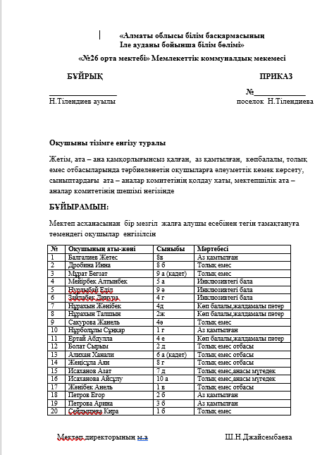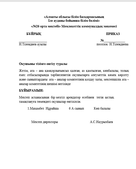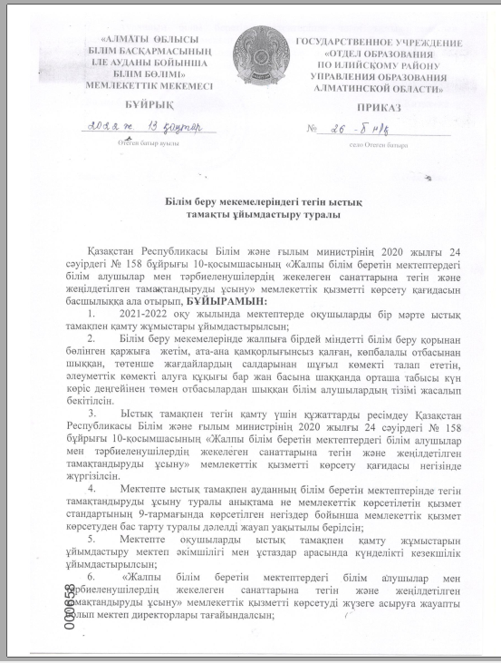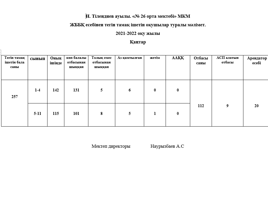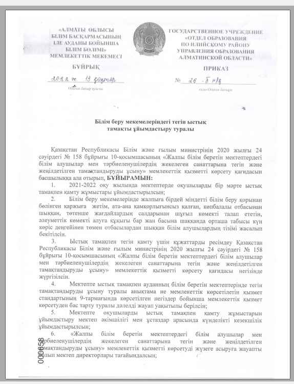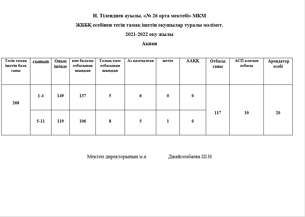 Тамақтандыру » "№26 ОРТА МЕКТЕБІ" МКМ