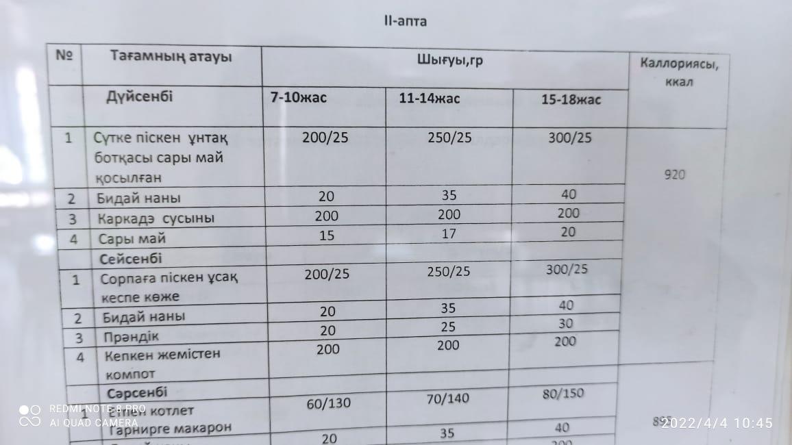 ыстық тамақпен қамту » "№26 ОРТА МЕКТЕБІ" МКМ