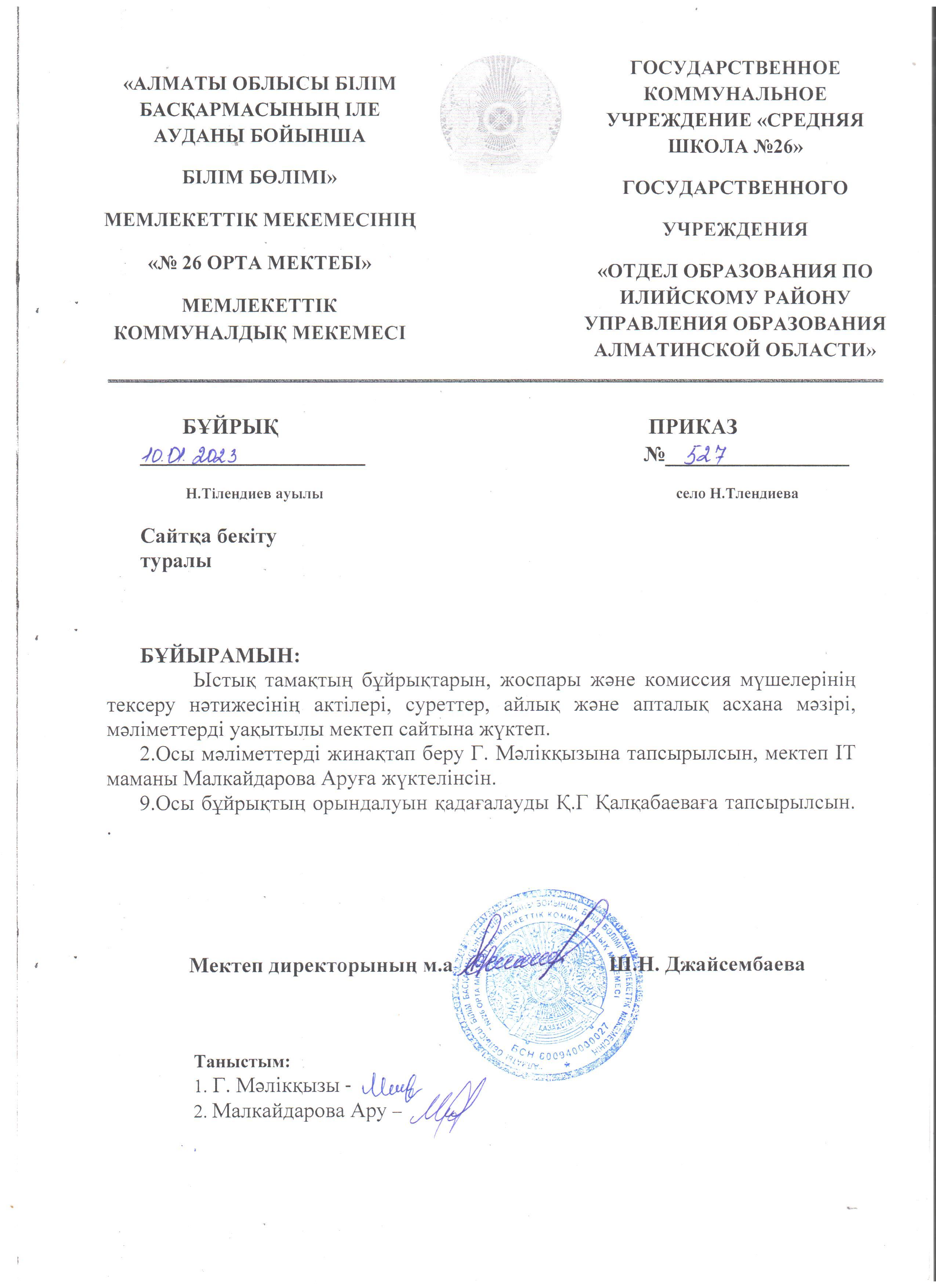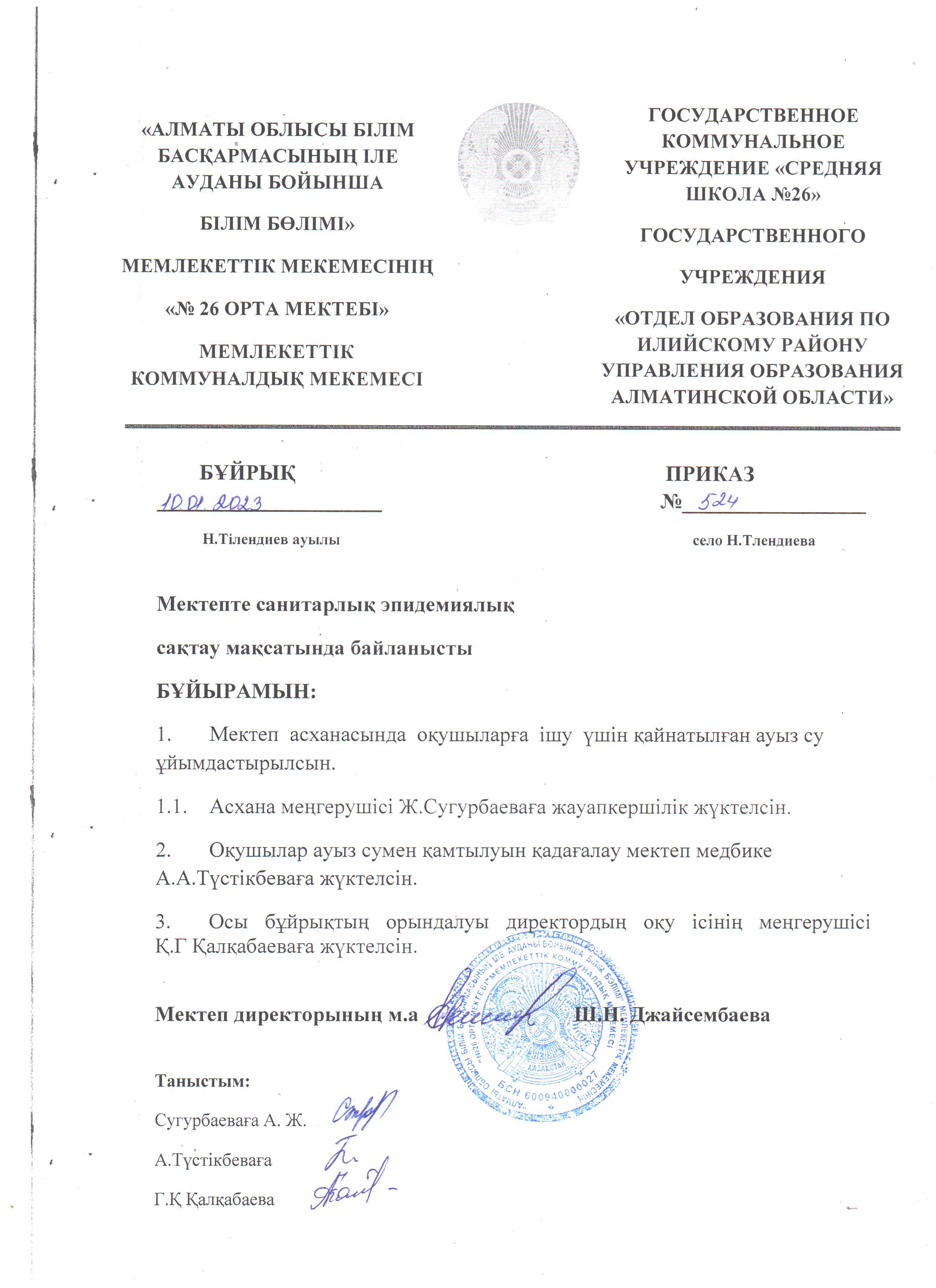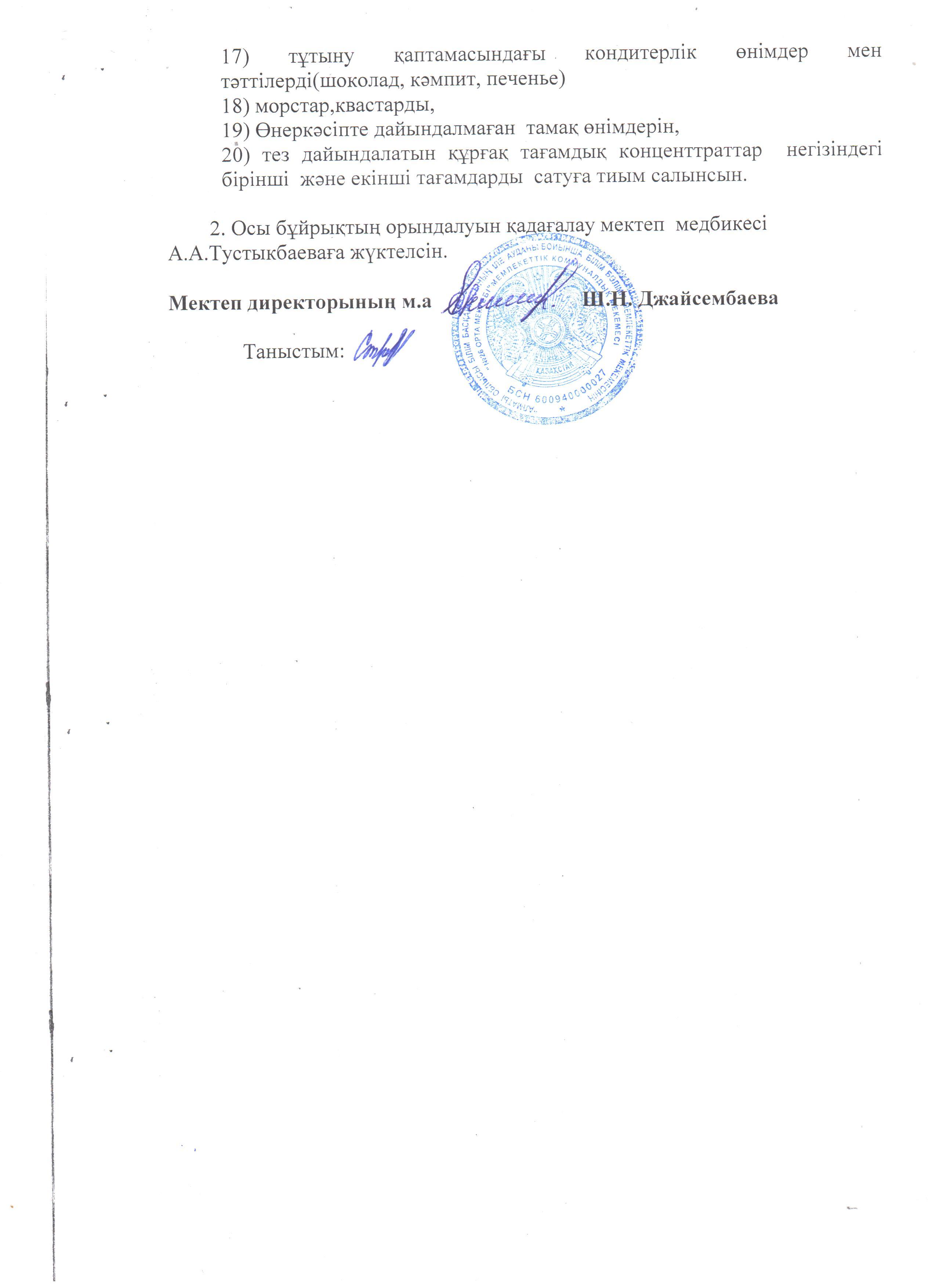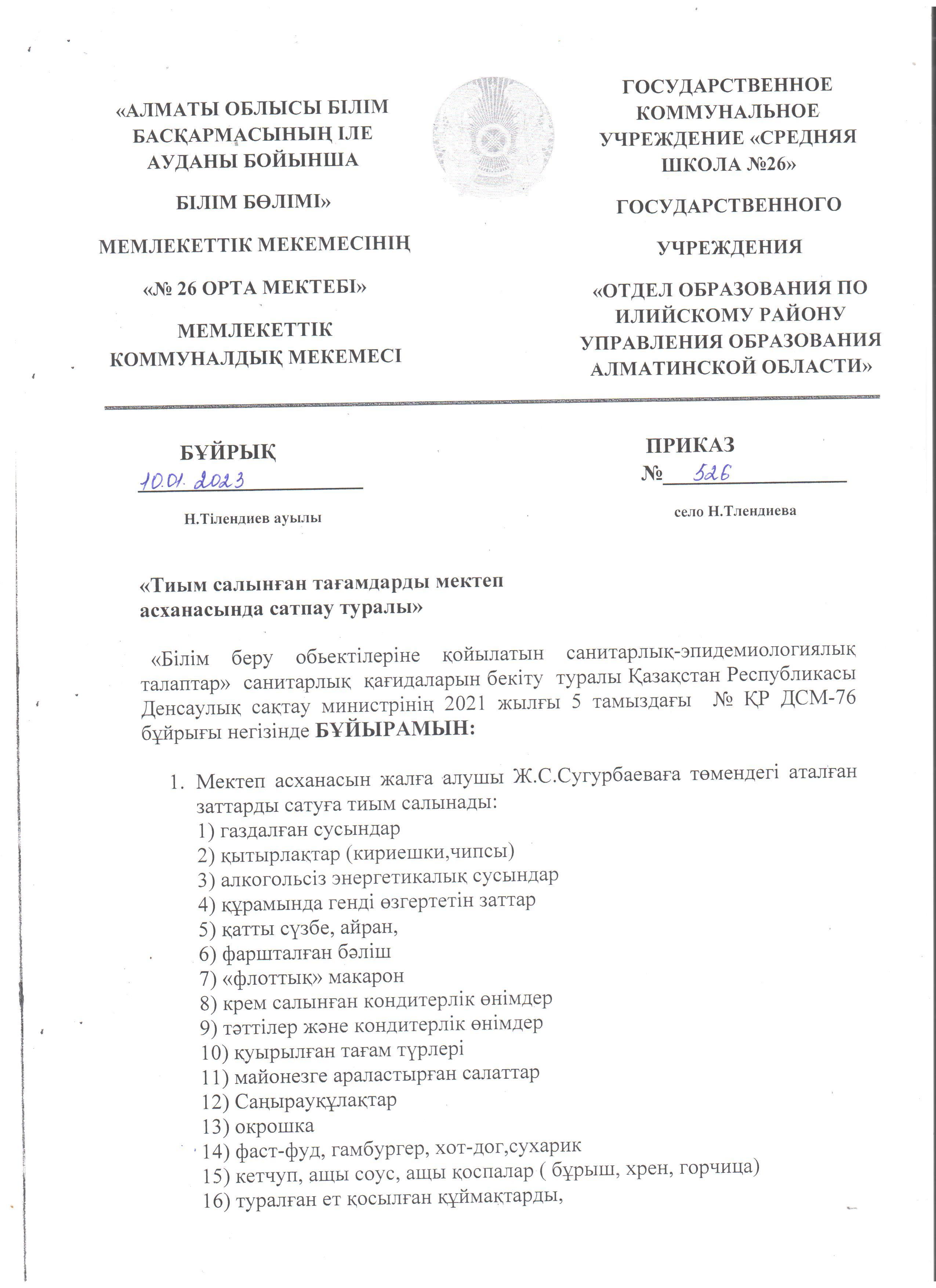 Мектеп асханасының жұмысын ұйымдастыру бұйрықтары » "№26 ОРТА МЕКТЕБІ" МКМ