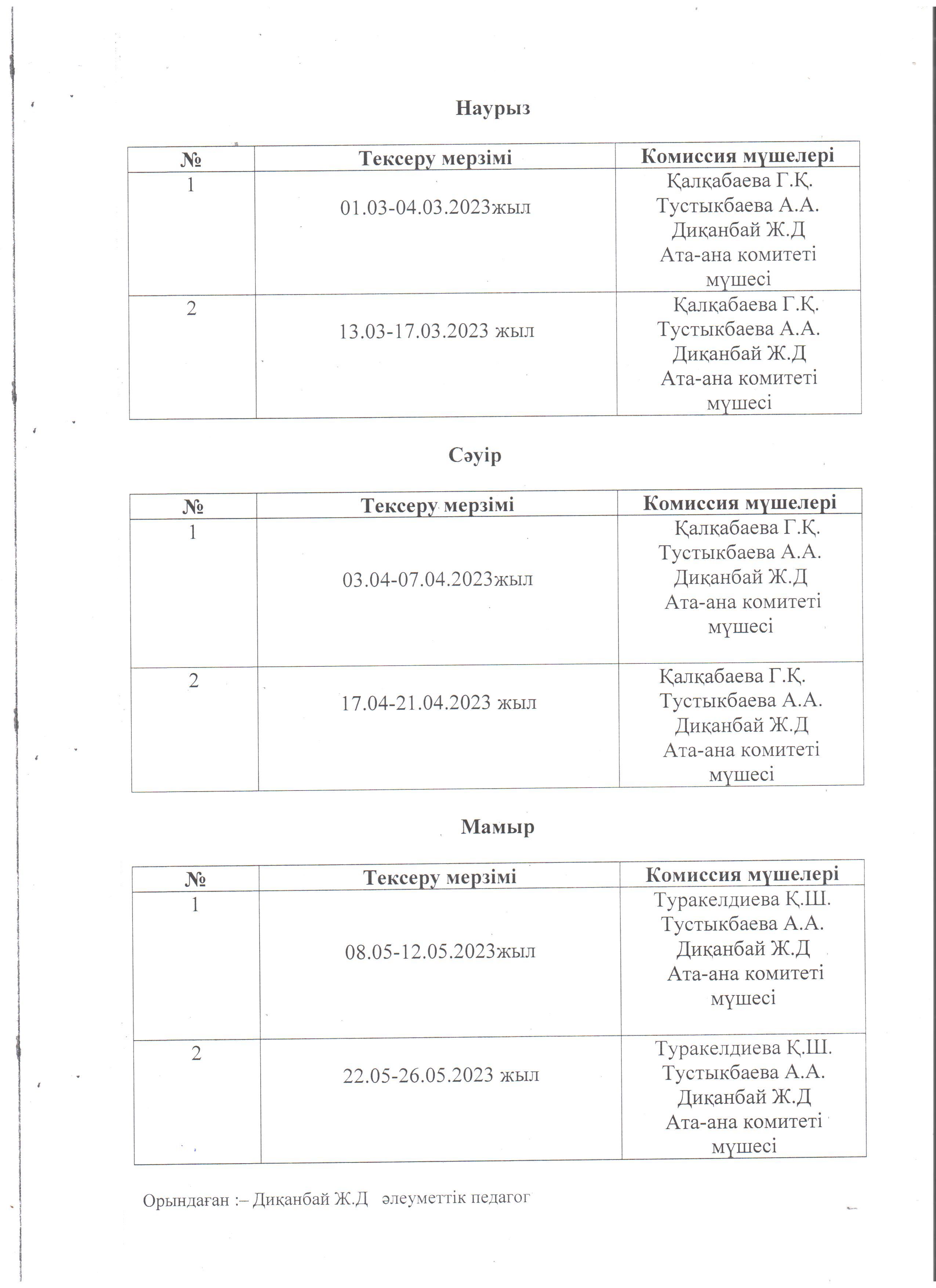 Комиссия мүшелерінің мектеп асханасын тексеру кестесі