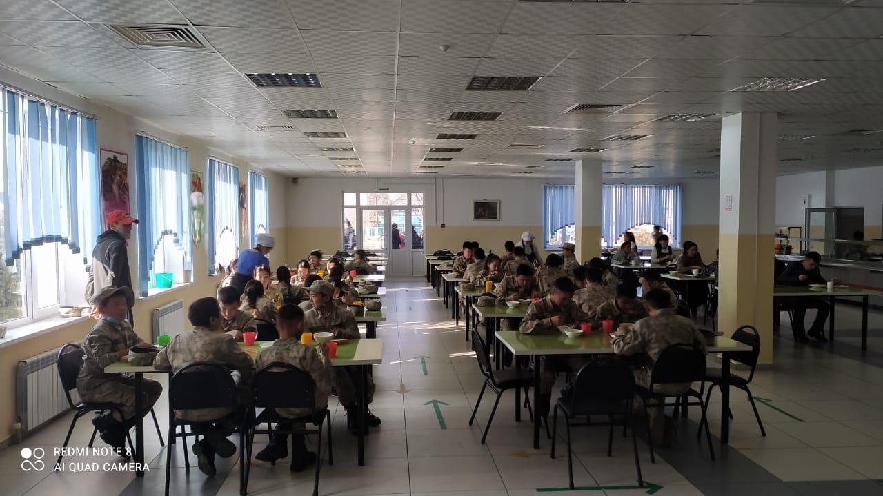 ЖБББҚ есбінен тегін тамақтанатын кадет оқушыларының тамақтану үстінде