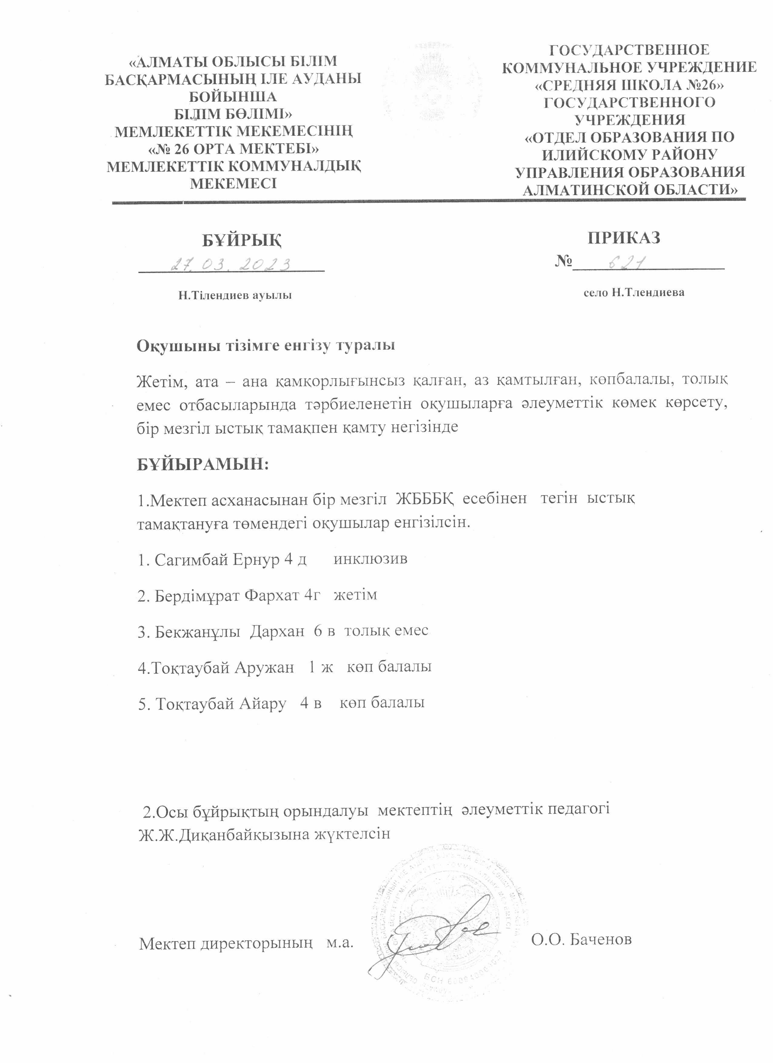 28 март 2023 0 1 2 3 4 5 ЖБББҚ есебінен тегін ыстық тамақ бойынша оқушыны тізімге енгізу туралы бұйрық