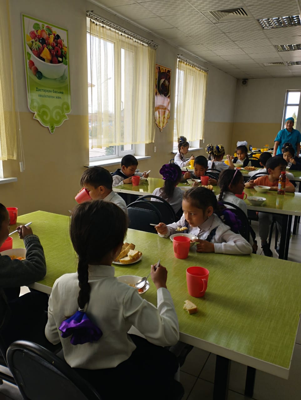 ЖБББҚ есебінен тегін ыстық тамақ ішетін оқушылар тамақтану барысында
