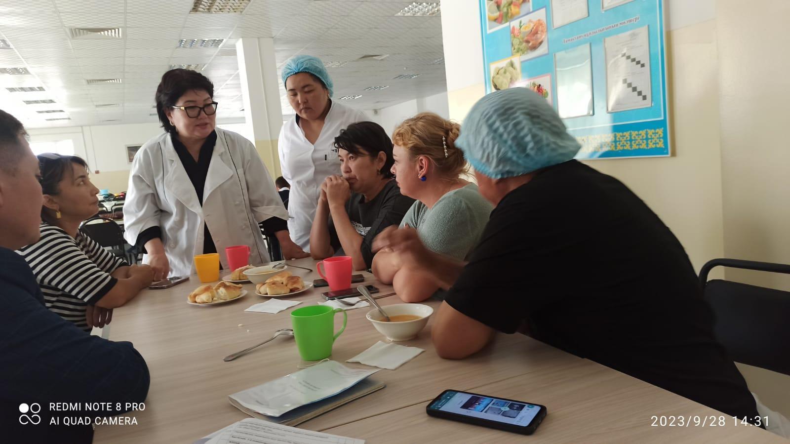 ЖББҚҚ қоры есебінен тегін ыстық тамақ ішетін оқушылардың ас мәзірлерін асханада комиссия құрамы тексеру АКТ жасады