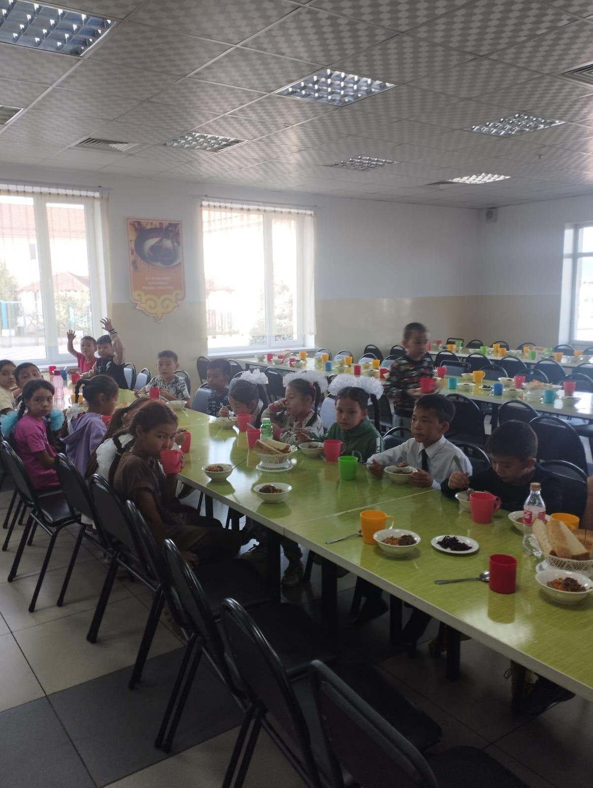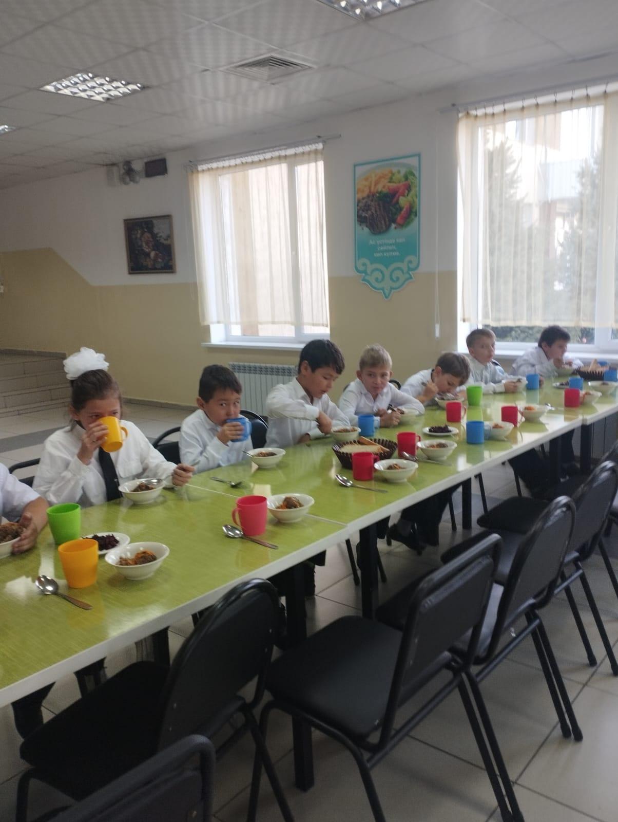 ЖББҚҚ есебінен тамақтану кезіндегі оқушылар