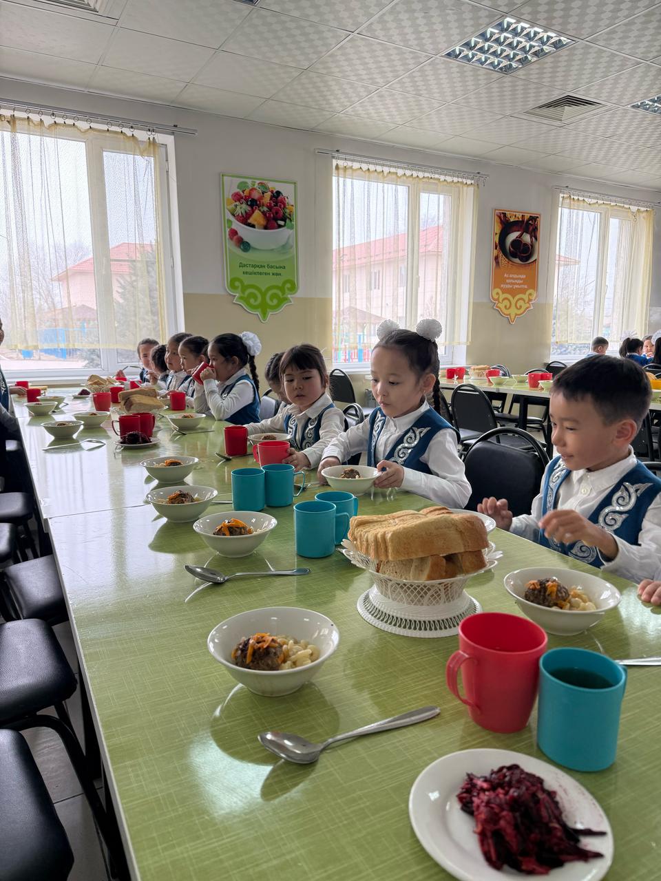 Мектеп асханасында оқушылардың тамақтану кезі